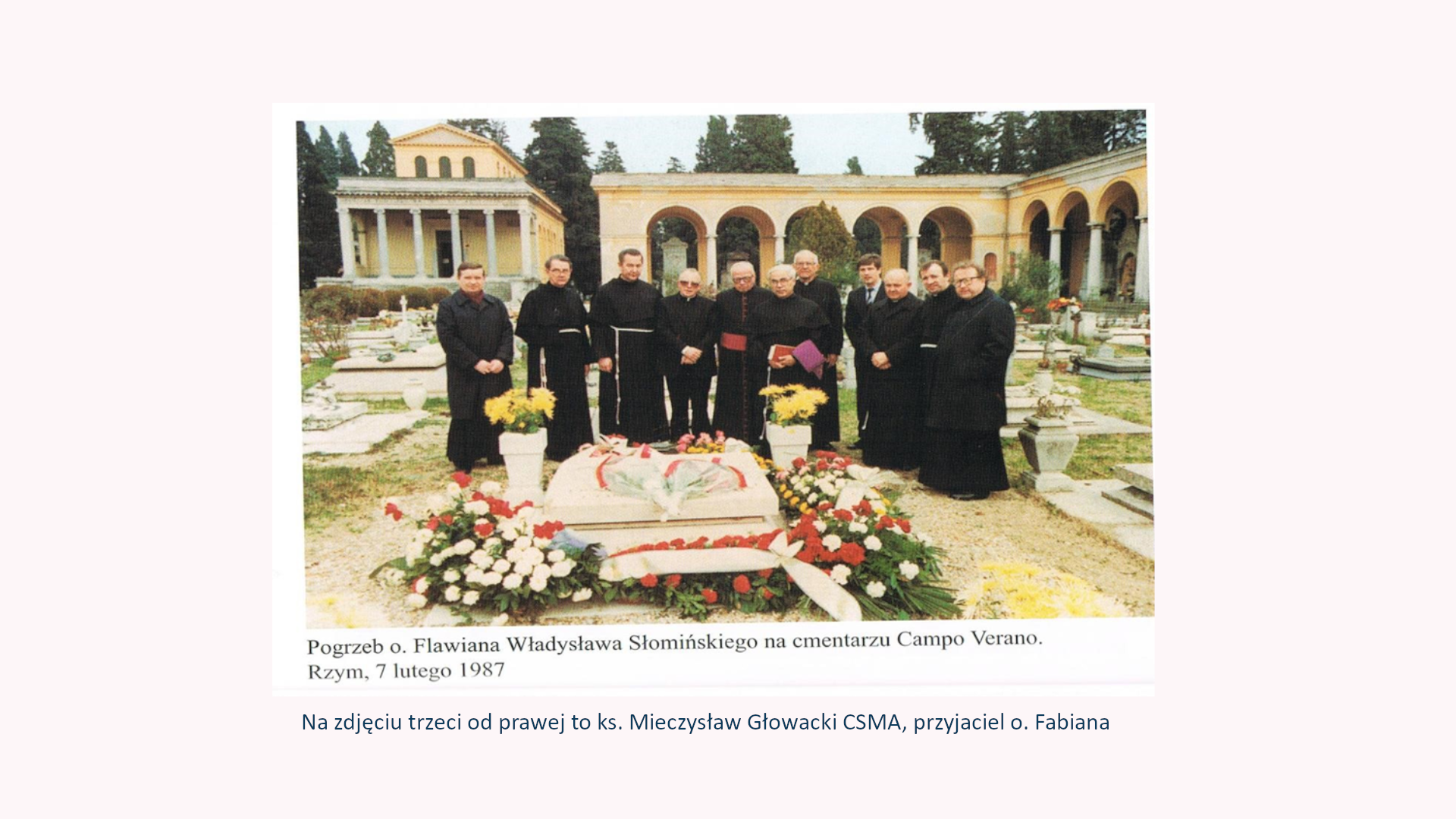 Ojciec Flawian ma zasługi dla naszego Zgromadzenia. Pod koniec lat 70-tych XX wieku poinformował ks. Mieczysława Głowackiego, Prokuratora i Postulatora naszego Zgromadzenia, że Bracia Mniejsi z parafii św. Sebastiana za Murami, na której terenie znajduje się kościółek „Quo Vadis”, pragną przekazać posługę przy nim komuś innemu. Zgromadzenie nasze się tym zainteresowało. Po dokonanych pertraktacjach z właściwymi władzami i za aprobatą papieża Pawła VI Zgromadzenie objęło opiekę nad kościółkiem, 1 lipca 1978 roku. Odpowiedzialnym za placówkę został ks. M. Głowacki. W niedzielnym duszpasterstwie pomagali mu księża studenci.