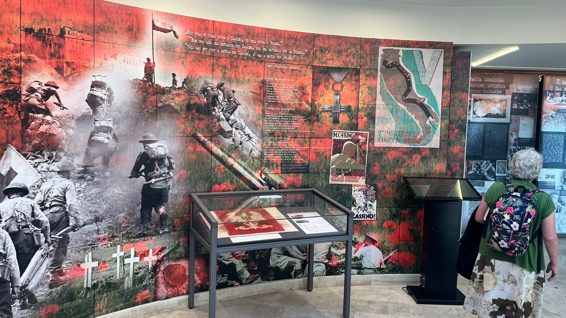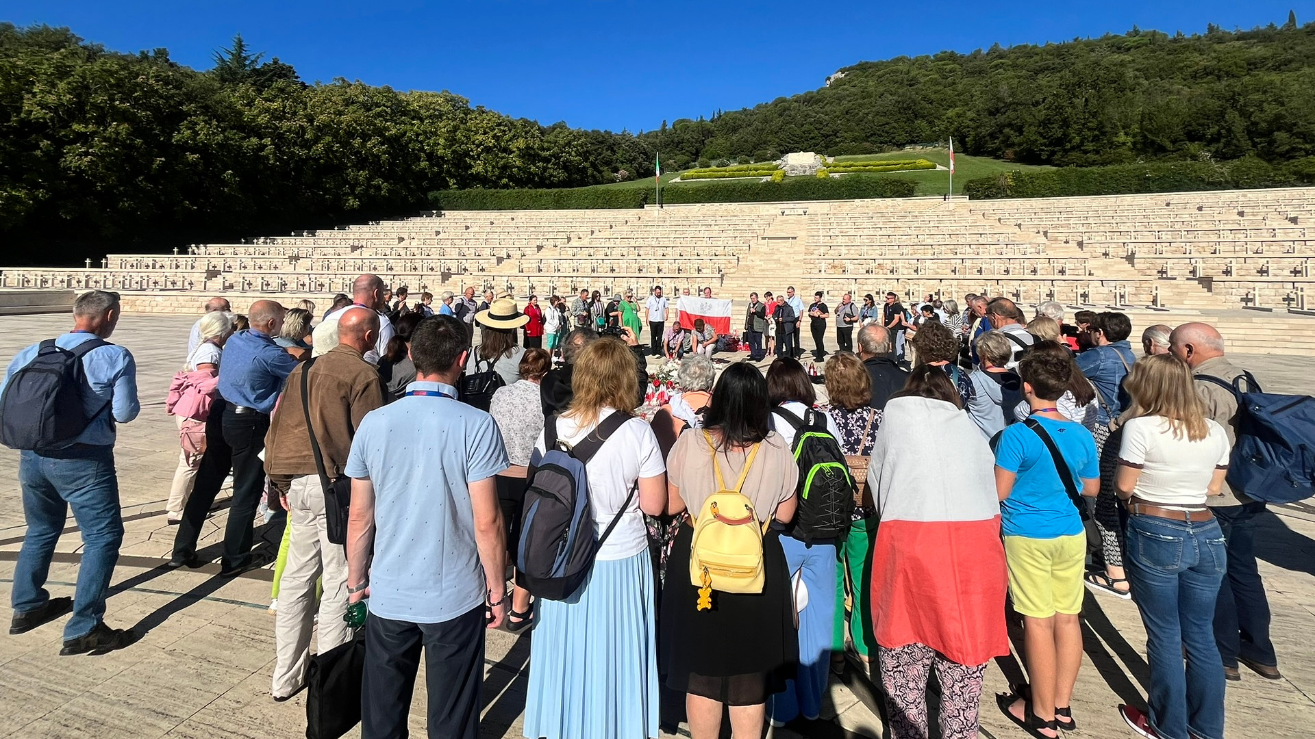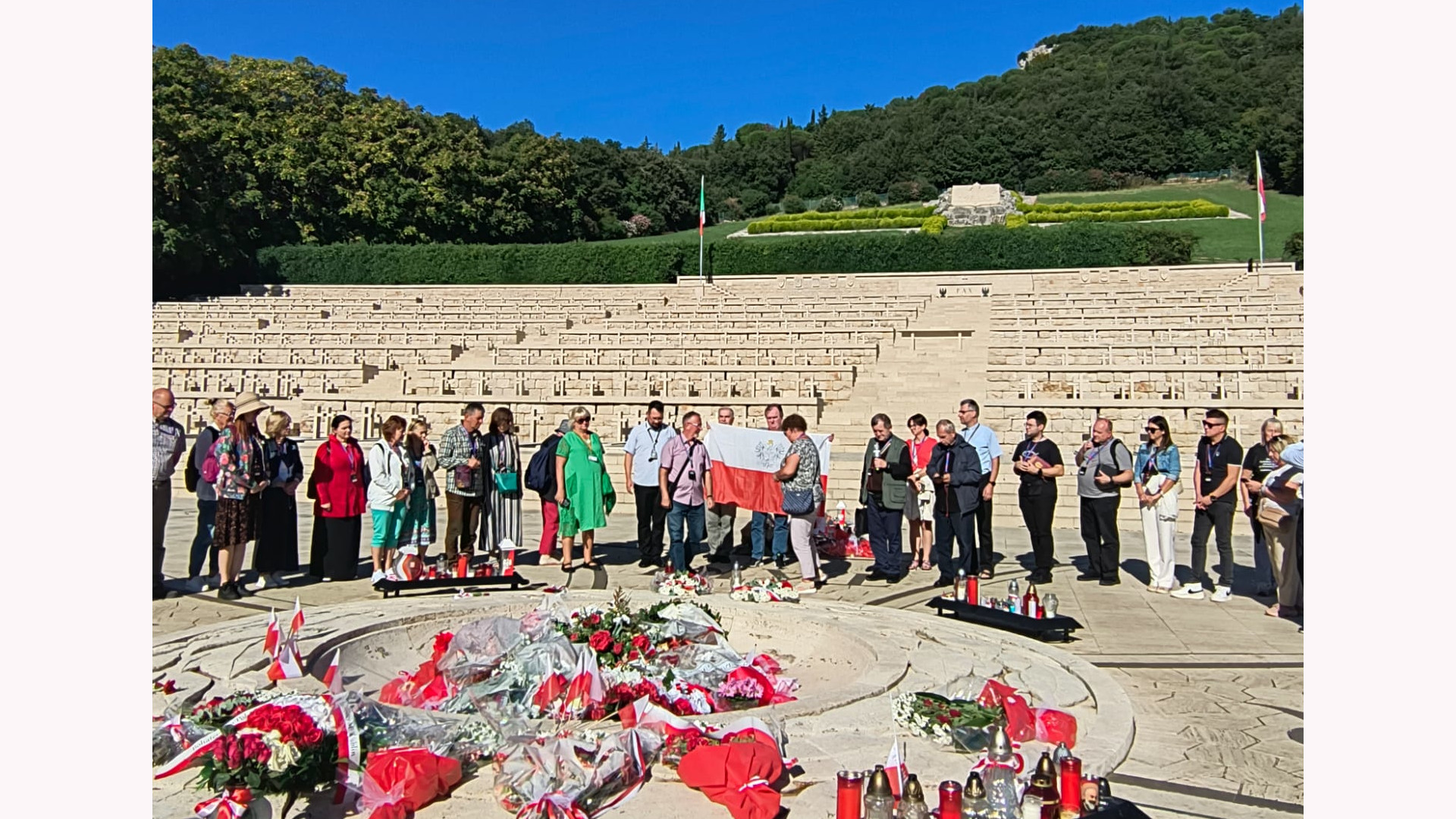 Z biało-czerwoną flagą na czele pochodu, w ciszy przeszliśmy do grobu generała Władysława Andersa i poległych żołnierzy, gdzie ks. Stanisław poprowadził okolicznościową modlitwę. Przy górnym ołtarzu odprawiliśmy polową Eucharystię, a po jej zakończeniu zaśpiewaliśmy niezapomniane „Czerwone maki”. Jak dowiedzieliśmy się od naszych pilotów, autorem słów był Feliks Konarski — żołnierz i poeta, który przebywał w pobliskim Campobasso. Słysząc grzmoty artylerii zapowiadające kolejne natarcie na wzgórze, w nocy z 17 na 18 maja 1944 roku napisał tekst pieśni. Następnie obudził kompozytora Alfreda Schütza, który w kilka godzin skomponował muzykę.