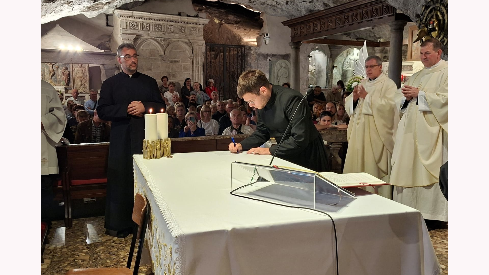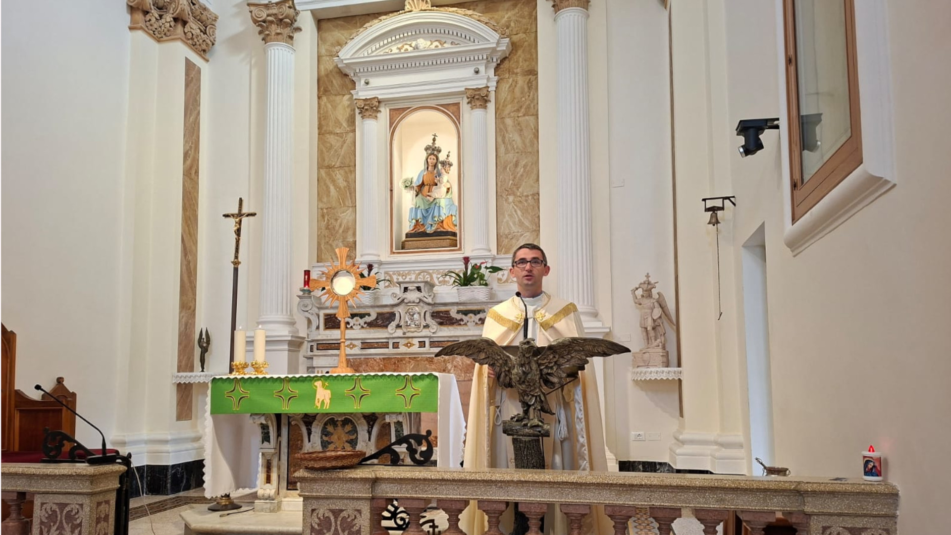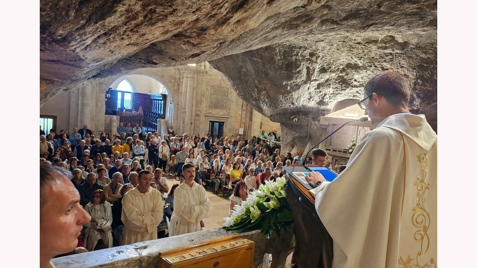 W samej Grocie uroczystej Mszy świętej odpustowej o godz. 11:00 przewodniczył kardynał Marcello Semeraro, Prefekt Dykasterii Spraw Kanonizacyjnych, który przybył na Gargano wraz z ks. Bogdanem Turkiem CSMA, michalitą pracującym od lat w tej Dykasterii.