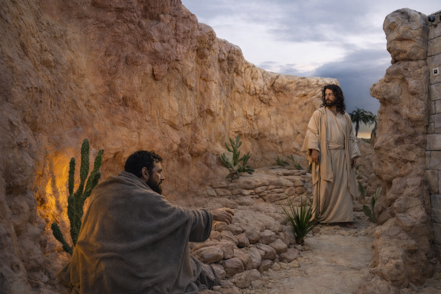 Jezus po ogłoszeniu przez Ojca, że jest Jego umiłowanym Synem, co ma miejsce podczas chrztu Jezusa w Jordanie, zostaje wyprowadzony przez Ducha na pustynię. Jezus pozostaje tam przez czterdzieści dni, poszcząc; żyje wśród dzikich zwierząt, a aniołowie Mu usługują.